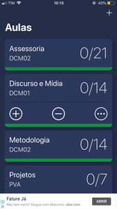 Esse é um aplicativo ótimo se você é daqueles que precisa controlar suas faltas direitinho se não quiser reprovar. Ele é bem simples e fácil de usar! Você adiciona suas disciplinas, e quando você faltar você adiciona uma falta pra essa aula, aí a barrinha da matéria vai de verde até vermelho, pra indicar se você ainda pode faltar ou não. Fácil demais!